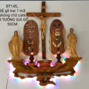 • Kệ gỗ trai ( kích thước tổng thể của bàn thờ chúa 1m3 x 1m50 cm).