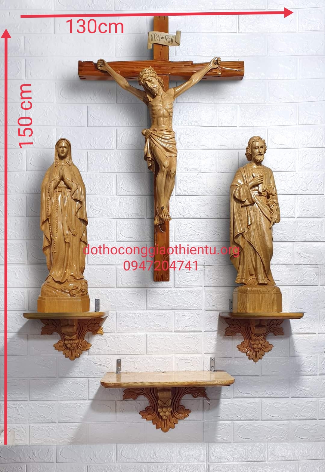 Kệ bàn thờ trên được sử dụng bằng gỗ hương, một loại gỗ tốt và quý. Kệ bàn thờ Chúa được sử dụng màu nâu tự nhiên của gỗ. Bộ tượng dùng với gam màu sáng làm cho bàn thờ Chúa trở nên tinh tế. Trên bàn thờ có trang trí thêm: hoa , đèn càng làm cho bàn thờ Chúa ấm cúng và thiêng liêng hơn.