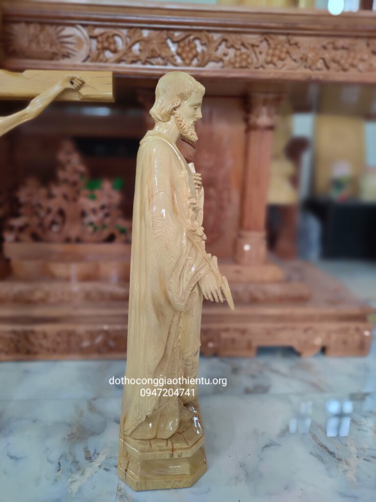 Tượng thờ ông Thánh Giuse tại đồ thờ Thiên Tứ làm từ nhiều chất liệu theo yêu cầu của khách hàng. Trong đó, gỗ tự nhiên được lựa chọn nhiều nhất.
